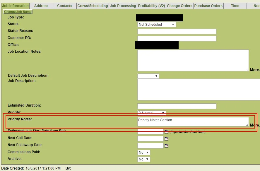 JobPro is giving organizations the option to include the Priority Notes (found on the Job Information tab) on their work orders. Some organizations like to add notes for the technician/installer in this area and would like the ability to show these notes on the work order print out (PDF).