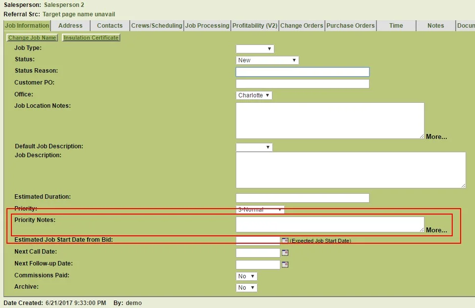 Priority Notes, located on the Information tab, were only on data sheets and jobs prior to this release. JobPro is enhancing the Priority Notes section to not only appear on the bid, but to transfer over when a job is created from that bid. Priority Notes will also transfer when creating a bid revision or cloning the bid.