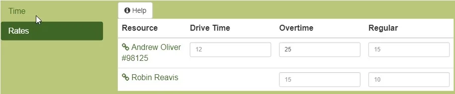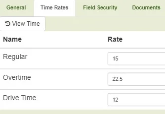 Two sub-tabs inside the Time tab on the job have been added: a Time sub-tab that will display the current contents of the Time tab along with a Rates sub-tab which will display the standard pay associated to the resource’s rates.