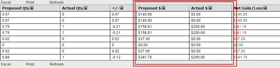 Two new columns have been added: one will show the proposed dollar amount for the item (Proposed $) and the other will show the actual dollar amount for the item (Actual $). The Actual $ column is the total cost for the item and is calculated by multiplying the actual quantity installed by the unit material cost. Each item will have a “Total” row directly underneath the item to display the comprehensive quantity and dollar amount for each item. At the bottom of the report will be a Grand Total of the quantity and dollar amount associated for the search result.